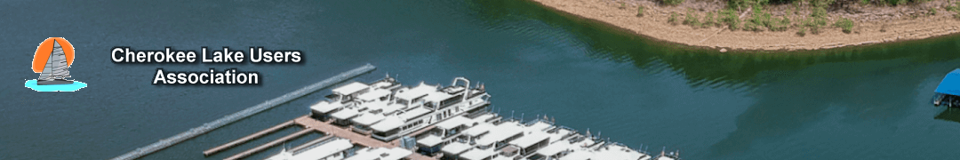 The Cherokee Lake Users Association (CLUA) is a non-profit 501(c)3 association. Our purpose is to maintain, protect and enhance the quality of Lake Cherokee and its surroundings for the collective interests of its members. CLUA is specifically interested in keeping the lake clean. CLUA has held annual lake clean-ups in partnership with Keep America Beautiful (KAB) and hopes to stimulate more interest each year with this project. CLUA keeps in touch with TVA and TWRA and has had speakers from both at previous meetings. CLUA tries to keep its members updated on any lake policy changes through this web site and by newsletters